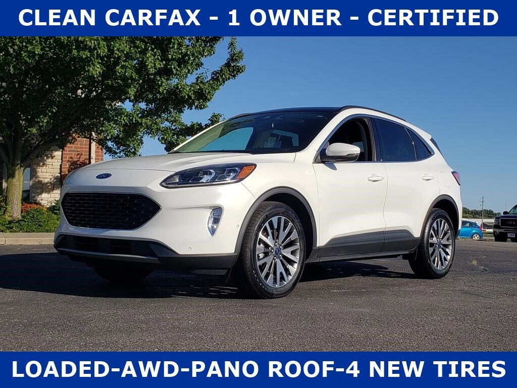 CARFAX One-Owner. Certified. CLEAN CARFAX, 4 NEW TIRES, White's Ford of Orrville is very proud to offer this 2020 Ford Escape Titanium in White with Ebony w/Heated ActiveX Front Sport Contour Bucket Seats. This Escape is very well equipped with Class II Trailer Tow Package, Equipment Group 401A (Wireless Charging Pad), Titanium Premium Package 2.0 (110V/150W AC Power Outlet, Black Roof-Rack Side Rails, Head-Up Display, and Panoramic Vista Roof), and Navigation System.