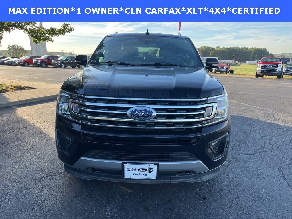 Recent Arrival! CARFAX One-Owner. Certified. White's Ford of Orrville is excited to offer this 2021 Ford Expedition Max XLT in Agate Black Metallic with Ebony w/ActiveX-Trimmed 1st & 2nd Row Seats or ActiveX-Trimmed 1st & 2nd Row Seats. This Expedition Max is very well equipped with Equipment Group 202A High Package (110V/150W AC Power Outlet, 2 Smart Charging USB-A Ports In 3rd Row, 2nd Row 40/20/40 Tip & Slide Seat, 3rd Row Power-Folding Head Restraints, 3rd Row Vinyl Seat, 4-Door Intelligent Access (Lock/Unlock), ActiveX-Trimmed 1st & 2nd Row Seats, Advanced Security Pack, Chrome Platform Running Boards, Heated Steering Wheel, Heated/Ventilated Front Seats, Instrument Panel Cluster, Power Liftgate, Power Tilt/Telescopic Steering Wheel w/Memory, Power-Folding Sideview Mirrors w/Autofold, Remote Start, Santa Cruz Vinyl-Wrapped Center Console Side Rails, SecuriCode Keyless Entry Pad, and Wireless Charging Pad) and Heavy-Duty Trailer Tow Package (3.73 Axle Ratio, Heavy-Duty Engine Radiator, Integrated Trailer Brake Controller, and Pro Trailer Backup Assist).