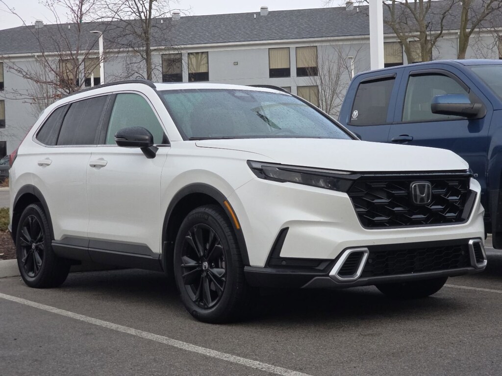 This thoroughly inspected 2023 Honda CR-V Hybrid Sport Touring available in Maumee, OH features an exceptional Platinum White Pearl exterior and a sophisticated Black interior that impresses drivers throughout Northwest Ohio and Southeast Michigan.