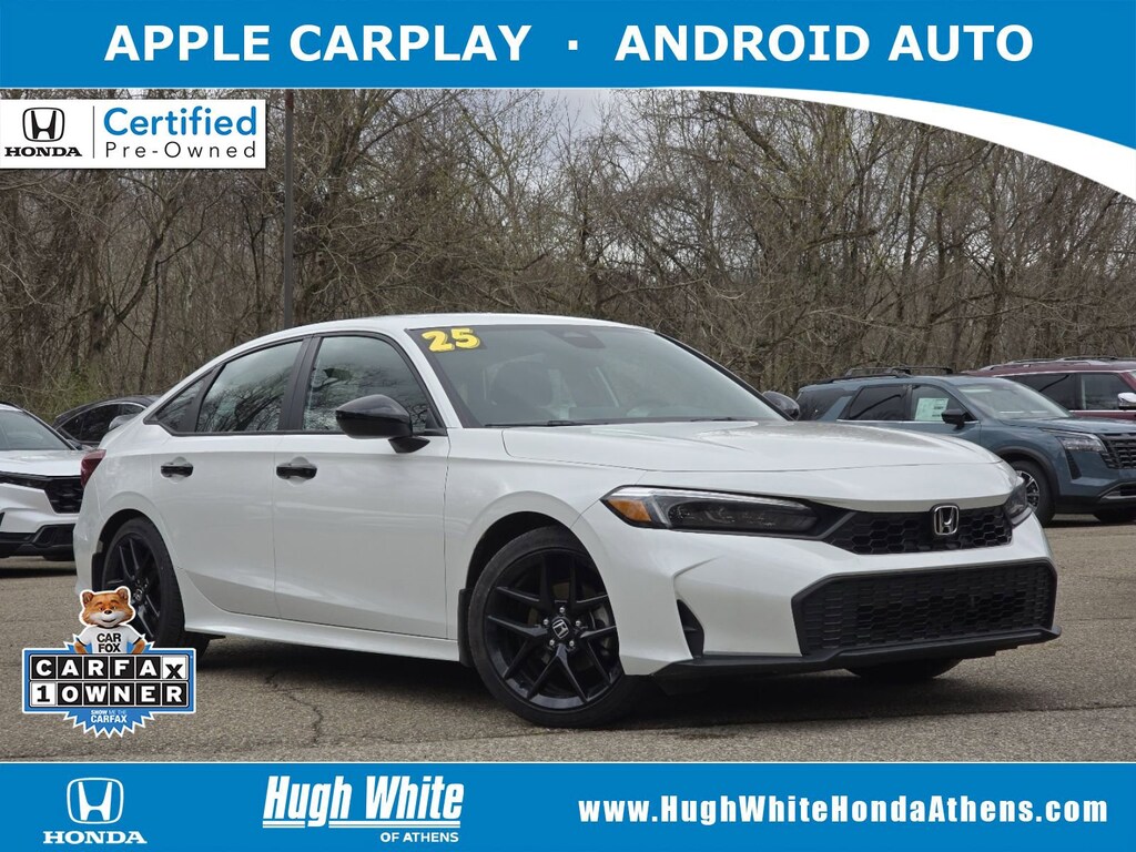 CARFAX VERIFIED 1-OWNER. Free CARFAX report! DESIRABLE FEATURES: APPLE CARPLAY, ANDROID AUTO, LANE-DEPARTURE WARNING, TECH PKG, REMOTE START, BLIND-SPOT MONITORING, BACKUP CAMERA, BLUETOOTH, Push-Button Start, Remote entry. Your 2025 Honda Civic Sedan Sport is perfect for daily work or weekend road trips to our neighboring communities of Athens.