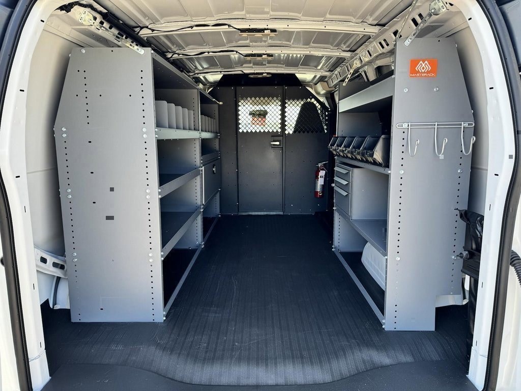 Summit White 2025 Chevrolet Express 2500 Work Van with a masterack bin package and bulkhead divider! Call Rod @ 740 652 2066 for more info! Free delivery anywhere in Ohio! Price includes $5,447 of dealer added accessories.