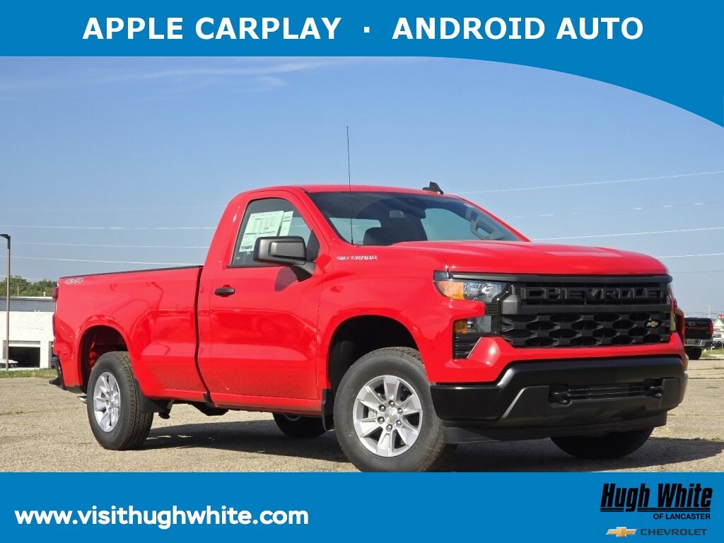 ===== Discover Chevrolet Silverado 1500 4WD Regular Cab Long Bed WT Exceptional Savings at Hugh White Chevrolet Lancaster! =====If you are looking* for GMC lease specials* for a new GMC near Lancaster, Pickerington, Circleville, and Logan, Hugh White Chevrolet Lancaster is thrilled to offer you competitive *GMC lease offers *onthis 2026 Chevrolet Silverado 1500 4WD Regular Cab Long Bed WT. Here is how the monthly payment of$576.89 is calculated for well-qualified buyers shoppingHugh White Chevrolet Lancaster with Tier 1 credit (use our *car lease calculator* or *monthly car payment calculator* for estimates) * Vehicle MSRP: $47,805.00 * Lease Term: 48 months * Mileage Allowance: 10,000 miles per year * Total Payments: $27,690.72 over the lease term * Security Deposit: $0.00 * Total Due at Signing: $5,356.89GM lease offers leverage the benefits of GM Financial, along with current Chevrolet Silverado 1500 4WD Regular Cab Long Bed WT rebates, and incentives available. PLUS, we have 1 other Silverado 1500 4WD Regular Cab Long Bed WT options for Lancaster's best selection. Call or drive in for Chevrolet lease deals like this attractive 2026 Chevrolet Silverado 1500 with lease options near Lancaster! This Silverado 1500 is also available for sale near Pickerington, Circleville, and Logan. These GM lease offers end 10/8/2025 Disclaimer: Lease this 2026 Chevrolet Silverado 1500 4WD Regular Cab Long Bed WT (Model CK10903; VIN 3GCNKAED3TG100353). MSRP $47,805.00. With $4,780.00 down at $576.89 for 48 months, on approved credit. $0.00 security deposit required. $5,356.89 due at signing - includes 1st mo. payment of $576.89. Total payments: $27,690.72. Must finance through GM Financial. Selling price $46,371.00. Excludes tax, title, registration, license, and $250 dealer doc fee. Lessee responsible for maintenance, repairs, excessive wear and tear, and $0.25/mile over 10000 miles/year. Early lease termination fee may apply. Option to purchase vehicle at lease end is $25,336.65. Offer cannot be combined with any other offers. Residential restrictions may apply. Available on in-stock units only. See dealer for complete details. Offer Expires: 10/08/2025.BRAND NEW 2026 MODEL YEAR! *DESIRABLE FEATURES:* APPLE CARPLAY, ANDROID AUTO, TOW PKG, BLUETOOTH, BACKUP CAMERA, Remote entry. Your NEW 2026 Chevrolet Silverado 1500 4WD Regular Cab Long Bed WT is perfect for daily work or weekend road trips around Fairfield County, OH.*NEW CHEVROLET BENEFITS:*3-Year/36,000-Mile Bumper-to-Bumper Limited Warranty5-Year/60,000-Mile Powertrain Limited WarrantyRoadside Assistance for the duration of the Powertrain Limited WarrantyChevrolet Connected Services capability with complimentary trial periodFirst maintenance visit included with most new Chevrolet purchasesThis 2026 Chevrolet Silverado 1500 4WD Regular Cab Long Bed WT includes the following *factory-installed packages, including:*:5.3l Ecotec3 V8 Engine (MSRP $1,595.00), Auto-locking Rear Differential (MSRP $395.00), 17" X 8" Bright Silver Painted Aluminum Wheels (MSRP $350.00), Chevytec Spray-on Black Bedliner (MSRP $545.00), Trailering Package (MSRP $425.00), and 2-speed Electronic Autotrac Transfer Case (MSRP $200.00), increasing the total value by $3,510.00 for this new Silverado 1500 for sale in Fairfield County, OH.Electronic Stability Control, Post Collision Braking-System, Brake Assist, Restricted driving mode, Delay-off headlights, Tire Pressure Monitoring System, ABS Brakes, Speed Sensitive Power Steering, Dual Air Bags, Overhead airbag, Auto Highbeams, Teen Driver Technology, Low tire pressure warning, Driver Front Side Impact Air Bag, Passenger Air Bag Sensor.This brand new 4x4 2026 Chevrolet Silverado 1500 4WD Regular Cab Long Bed WT features a bold Red Hot exterior with a modern and convenient Jet Black Interior and is for sale now near Lancaster, OH and the perfect newChevrolet vehicle residents in the neighboring communities of Columbus, Newark, Logan, and Reynoldsburg have bee