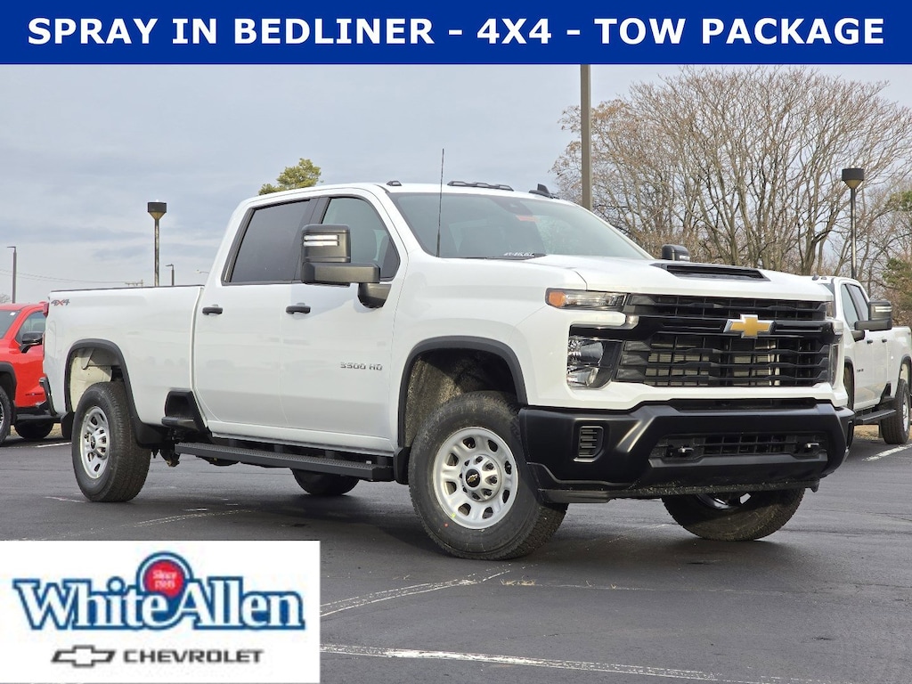 $1,000 off MSRP! White Allen Chevrolet is proud to offer this 2026 Chevrolet Silverado 3500HD Work Truck in Summit White. SPRAY IN BEDLINER, TRAILER BRAKE CONTROLS, TOW PACKAGE, 4X4, APPLE CARPLAY AND ANDROID AUTO, BACKUP CAMERA, RUNNING BOARDS, Suspension Package.