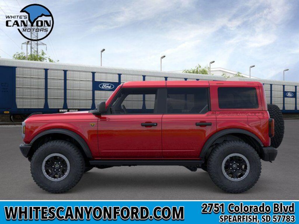 Equipment Group 332A Mid Package: Rear Parking Sensors; Power Outlet - Back Side of Center Floor Console; Dual Smart Charging USB Ports; Front Row Heated Seats; Driver and Front Passenger Illuminated Sliding Visor Vanity Mirrors; AM/FM Stereo; Marine Grade Vinyl Heated Bucket Seats; Dual-Zone Electronic Automatic Temperature Control; Connected Navigation; Ambient Footwell Lighting; Remote Start System; 2-Door Intelligent Access with Lock/unlock. Ford Co-Pilot360: Auto High-Beam Headlamps; Rear View Camera; Pre-Collision Assist with Automatic Emergency Braking; Blind Spot Information System (BLIS); Lane-Keeping System. Sasquatch Package: High Clearance Fender Flares; High Clearance Suspension; 4.7 Final Drive Ratio; LT315/70R17 Rugged-Terrain Tires; Position-Sensitive Bilstein Shock Absorbers. Body Color-Painted Hard Top. 17 Black High Gloss-Painted Aluminum Wheels. Ford Performance Heavy-Duty Modular Front Bumper. Sasquatch Graphics Package. Hard Top Sound Deadening Headliner. Ruby Red Met Tinted CC. Door Storage Bags. Front and Rear Floor Liners Without Carpet Floor Mats. **Equipment listed is based on original vehicle build and subject to change. Please confirm the accuracy of the included equipment by calling the dealer prior to purchase.**