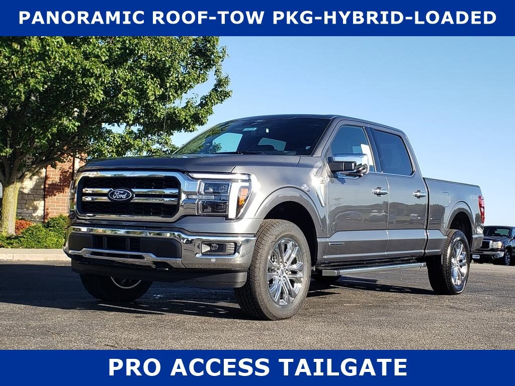 PANORAMIC ROOF MOONROOF, PRO ACCESS TAILGATE, HYBRID, HEATED AND COOLED LEATHER SEATS, TOW PACKAGE, TRAILER BRAKE CONTROLS, NAVIGATION, HEATED STEERING WHEEL, REMOTE START, APPLE CARPLAY, ANDROID AUTO, Carbonized Gray Metallic 2025 Ford F-150 Lariat 4WD 10-Speed Automatic 3.5L PowerBoost Full-Hybrid V6