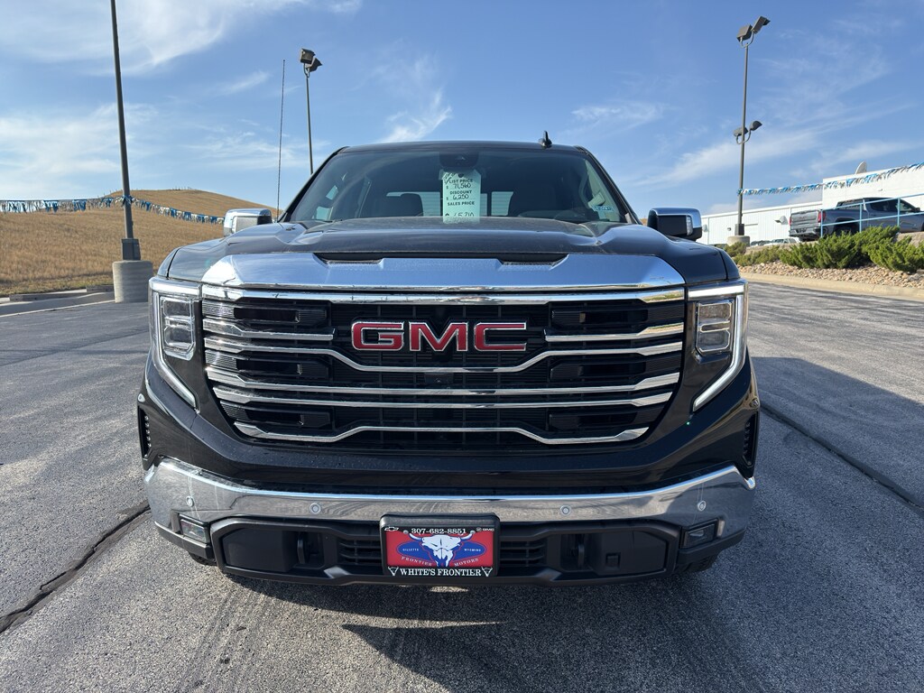 SLT Convenience Package: Ventilated Driver and Front Passenger Seats; Power Rake and Telescoping Steering Column; Premium Bose 7-Speaker Sound System; Floor-Mounted Center Console; Wireless Charging; Front Bucket Seats. Max Trailering Package. SLT Preferred Package: Heated 2nd Row Outboard Seats; Power Sliding Rear Window with Rear Defogger; Adaptive Cruise Control; Universal Home Remote. SLT Premium Plus Package. ProGrade Trailering System: In-Vehicle Trailering System App; Hitch View. Sierra Safety Plus Package: Rear Cross Traffic Braking; HD Surround Vision; Trailer Side Blind Zone Alert; Rear Pedestrian Detection; Ultrasonic Front and Rear Park Assist; Safety Alert Seat; Trailer Camera Provisions. Preferred Equipment Group 4SA: HD Rear Vision Camera; LED Cargo Area Lighting; Remote Vehicle Starter System; Electric Rear-Window Defogger; Theft Deterrent System (unauthorized Entry); Chrome Header and Chrome Grille Insert Bars; 170 Amp Alternator; Auxiliary External Transmission Oil Cooler; Front Rain-Sensing Wipers; GMC Pro Safety; Trailering Package; 120-Volt Interior Power Outlet; 2 Charge/data USB Ports; Steering Wheel Audio Controls; 2 type-C Charge-Only Rear USB Ports; Color-Keyed Carpeting Floor Covering; OnStar Services Capable; Power Front Passenger Windows with Express Up/down; Deep-Tinted Glass; 6-Speaker Audio System Feature; Power Rear Windows with Express Down; Integrated Trailer Brake Controller; SiriusXM with 360L Trial Subscription; Single Speed Transfer Case; Power Front Windows with Driver Express Up/down; Manual Tilt-Wheel and Telescoping Steering Column; Front Frame-Mounted Black Recovery Hooks; Keyless Open and Start; Wi-Fi Hotspot Capable; Perimeter Lighting; Push Button Start; Rear Wheelhouse Liners; Auto-Locking Rear Differential; Power Door Locks. 20 Polished Aluminum Wheels. Power Sunroof. Chrome Wheel to Wheel Assist Steps. Spray-On Pickup Bedliner with GMC Logo. Onyx Black. 275/60R20SL AT BW Tires. Dual Active Exhaust. **Equipment listed is based on original vehicle build and subject to change. Please confirm the accuracy of the included equipment by calling the dealer prior to purchase.**