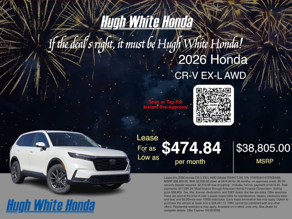 If the deal's right, it must be Hugh White! Stop in today and see why thousands of customers have trusted us with their new vehicles over the years! 2026 Honda CR-V Platinum