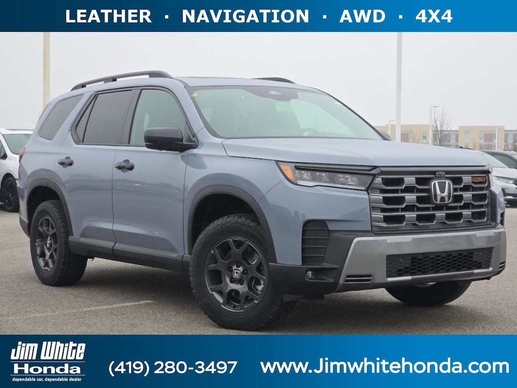 This 2026 Honda Pilot TrailSport is loaded with state-of-the-art features like NAVIGATION, AWD, 4X4, LEATHER, REMOTE START, APPLE CARPLAY, WIRELESS PHONE CHARGER, 3RD ROW SEAT, HEATED SEATS, 360 CAM, LANE-DEPARTURE WARNING, HEATED-REAR SEATS, ANDROID AUTO, HEATED-STEERING WHEEL, USB-C, REAR A/C, BACKUP CAMERA, HOMELINK, ALLOY-WHEELS, BLIND SPOT MONITORING, STOW "N GO, BLUETOOTH, WiFi Hotspot, Fog Lamps, Dual Power Seats, Remote entry, usb that Toledo and Perrysburg motorists crave.