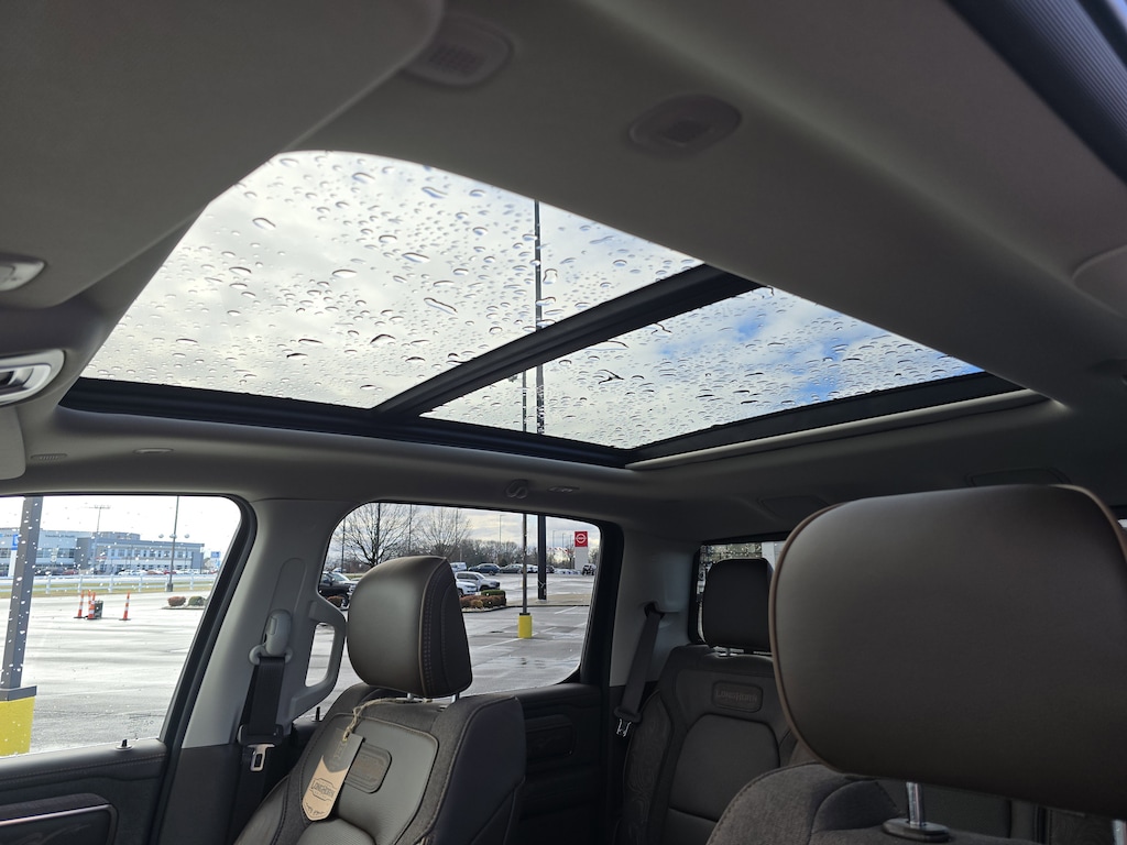 Quick Order Package 22K Longhorn: Premium Filigree Leather Seats; Warm Chrome Key Fob; Longhorn Instrument Cluster Theme 3; Premium Door Trim Panel; Grille Surround 4 Chrome Texture 5 Chrome; Longhorn Badge. Off Road Group: Off Road Decals; Steering Gear Skid Plate; Falken Brand Tires; Raised Ride Height; 285/45R22XL BSW All Terrain Tires; Front Extra Heavy Duty Shock Absorbers; 20" Full Size Aluminum Spare Wheel; Rear Extra Heavy Duty Shock Absorbers; Full Size Spare Tire; E-Locker Rear Axle; Transfer Case Skid Plate; Fuel Tank Skid Plate; Selec-Speed Control. Towing Technology Group: Trailer Hitch Line-Up Assist. Bed Utility Group: MOPAR 4 Adjustable Cargo Tie-Down Hooks; Exterior 115V AC Outlet; MOPAR Deployable Bed Step Center Mount. Trailer Tow Group: Trailer Light Check; Trailer Brake Control; Trailer Reverse Steering Control; Trailer Tire Pressure Monitoring System. 22" X 9" Premium Paint/polished Wheels. Dual-Pane Panoramic Sunroof. Multi-Function Tailgate. Chrome Power-Fold Trailer Tow Mirrors. E-Locker Rear Axle. Trailer Brake Control. Forged Blue Metallic. **Equipment listed is based on original vehicle build and subject to change. Please confirm the accuracy of the included equipment by calling the dealer prior to purchase.**