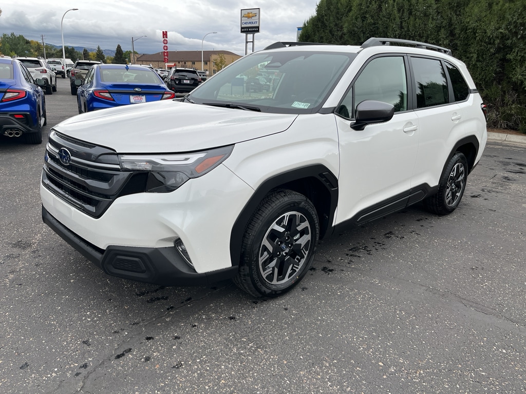 Apple CarPlay: Seamless smartphone integration for this mid-size suv - stay connected and entertained on the go! This mid-size suv has auto-adjust speed for safe following. This model features a hands-free Bluetooth phone system. It offers Automatic Climate Control for personalized comfort. This vehicle stays safely in its lane with Lane Keep Assist. The Subaru Forester comes equipped with Android Auto for seamless smartphone integration on the road. Protect it from unwanted accidents with a cutting edge backup camera system. Never get into a cold vehicle again with the remote start feature on this Subaru Forester. Maintaining a stable interior temperature in this model is easy with the climate control system. This 2025 Subaru Forester shines with clean polished lines coated with an elegant white finish. Conquer any rainy, snowy, or icy road conditions this winter with the all wheel drive system on this 2025 Subaru Forester . Control your garage door with its built in HomeLink System.
