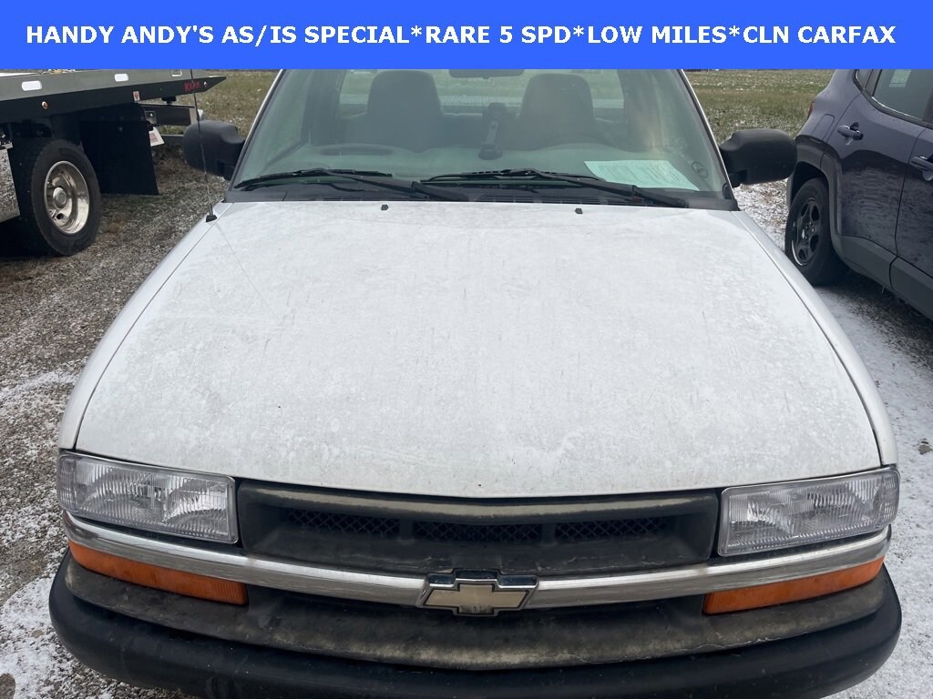 HANDY ANDY'S AS/IS SPECIAL*RUNS AND DRIVES*AS/ IS* PARTS ONLY*FIXER UPPER SPECIAL* RARE 5 SPD**CLEAN CARFAX**LOCAL TRADE**Recent Arrival! White's Ford of Orrville is pleased to offer this 2002 Chevrolet S-10 in Summit White with Graphite w/Custom Cloth Seat Trim. This S-10 is very well equipped with Preferred Equipment Group 1SA (Air Conditioning and Base Trim), AM/FM radio, Power steering, and Variably intermittent wipers.