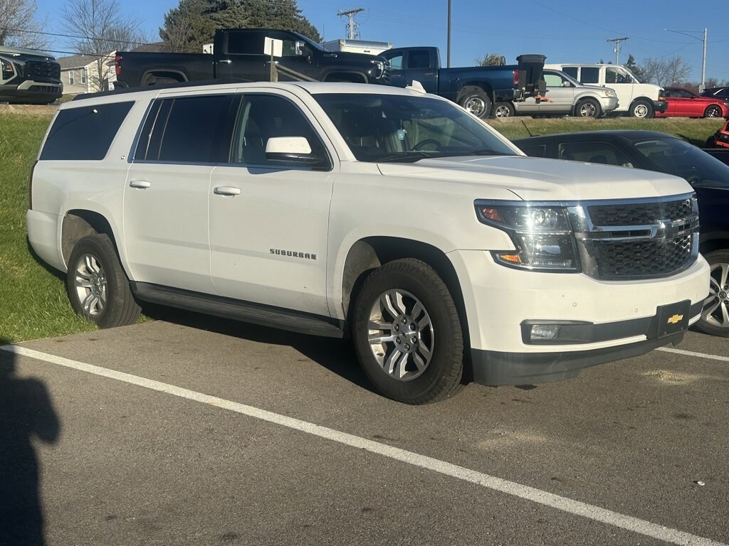 2019 Chevrolet Suburban LT Summit White 12-Volt Auxiliary Power Outlet (5), 1st & 2nd Row Color-Keyed Carpeted Floor Mats, 2nd Row 60/40 Split-Folding Manual Bench, 2nd Row Pwr Release 60/40 Split Folding Bench Seat, 3rd Row 60/40 Power Fold Split-Bench, 3rd Row Manual 60/40 Split-Folding Fold Flat Bench, 4-Wheel Antilock Disc Brakes, 6-Way Power Front Passenger Seat Adjuster, AM/FM Stereo w/Navigation, Auto-Dimming Inside Rear-View Mirror, Black Assist Steps, Bose Premium Audio System Feature, Color-Keyed Carpeting Floor Covering, Driver Inboard & Front Passenger Airbags, Electronic Cruise Control w/Set & Resume Speed, Enhanced Driver Alert Package, Extended-Range Remote Keyless Entry, Exterior Parking Camera Rear, Floor Console w/Storage Area, Fog Lamps, Front & Rear Park Assist, Fully automatic headlights, Hands-Free Power Liftgate, HD Radio, Heated 2nd Row Outboard Seats, Heated door mirrors, Heated Leather Wrapped Steering Wheel, Lane Change Alert w/Side Blind Zone Alert, Leather-Wrapped Steering Wheel, Luxury Package, Memory Settings, Passive Entry System, Power Folding & Adjustable Heated Outside Mirrors, Power Liftgate, Power Tilt & Telescoping Steering Column, Power Tilt-Sliding Sunroof w/Express-Open/Close, Power-Adjustable Accelerator & Brake Pedals, Preferred Equipment Group 1LT, Push Button Keyless Start, Rear Cross Traffic Alert, Rear Park Assist w/Audible Warning, Rear Seat Entertainment System, Remote Vehicle Start, Roof-Mounted Luggage Rack Side Rails, SiriusXM Radio, Sun, Entertainment & Destinations Package, Universal Home Remote.