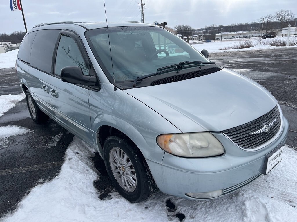 LOCAL TRADE *CLEAN CARFAX* LEATHER* VERY LOW MILES* ONLY 3 OWNERS! 2nd ROW CAPTAINS, 3rd ROW. HEATED LEATHER TRIM SEATS. Recent Arrival! White's Ford of Orrville is pleased to offer this 2001 Chrysler Town & Country Limited in Sterling Blue Satin Glow with Navy Blue w/Premium Leather Low Back Bucket Seats. This Town & Country is very well equipped with Quick Order Package 29X, 8 Speakers, Air Conditioning, CD player, Power driver seat, Power steering, and Power windows.