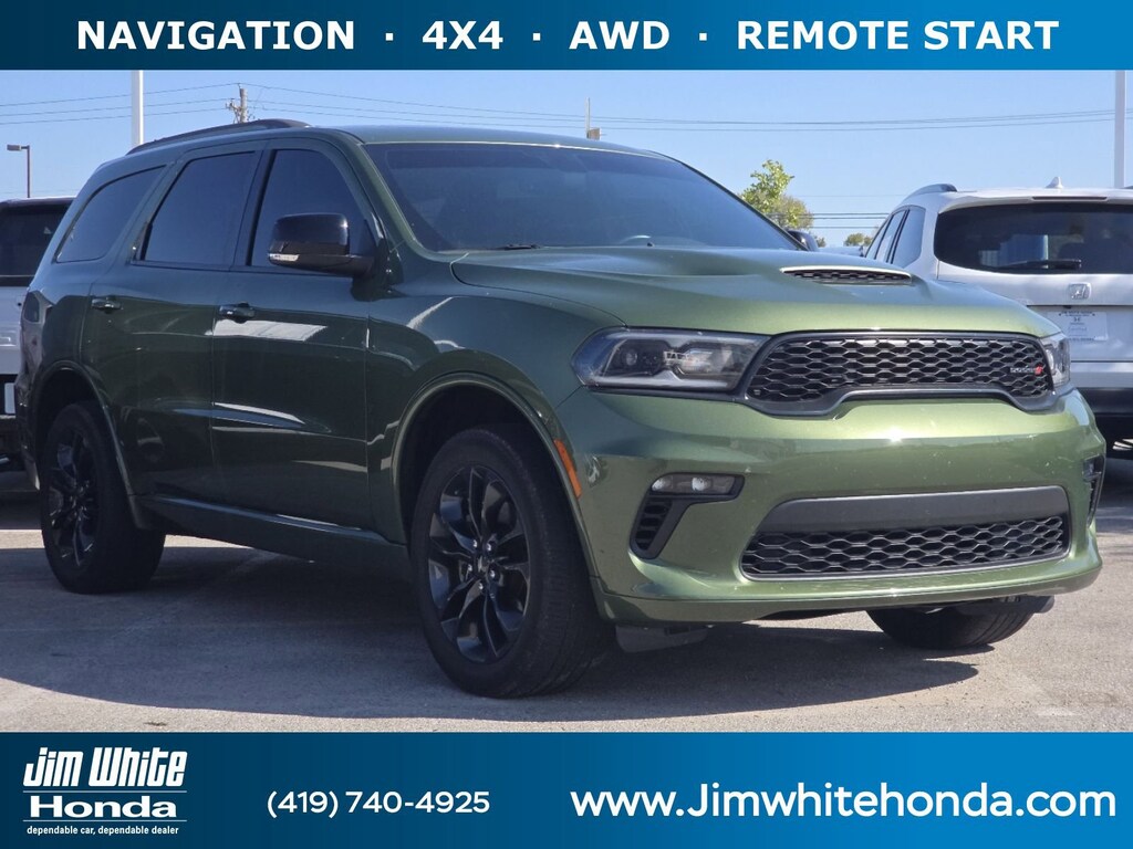 Please call 419-740-4925 anytime! for more info on this 2021 Dodge Durango GT Plus. This vehicle for sale is packed with premium features like NAVIGATION, 4X4, AWD, 3RD ROW SEAT, REMOTE START, HEATED-REAR SEATS, HEATED-STEERING WHEEL, REAR A/C, HOMELINK, ALLOY-WHEELS, BACKUP CAMERA, STOW "N GO, BLUETOOTH, WiFi Hotspot, Fog Lamps, SiriusXM, Remote entry, Dual Power Seats that Toledo and Perrysburg drivers expect.