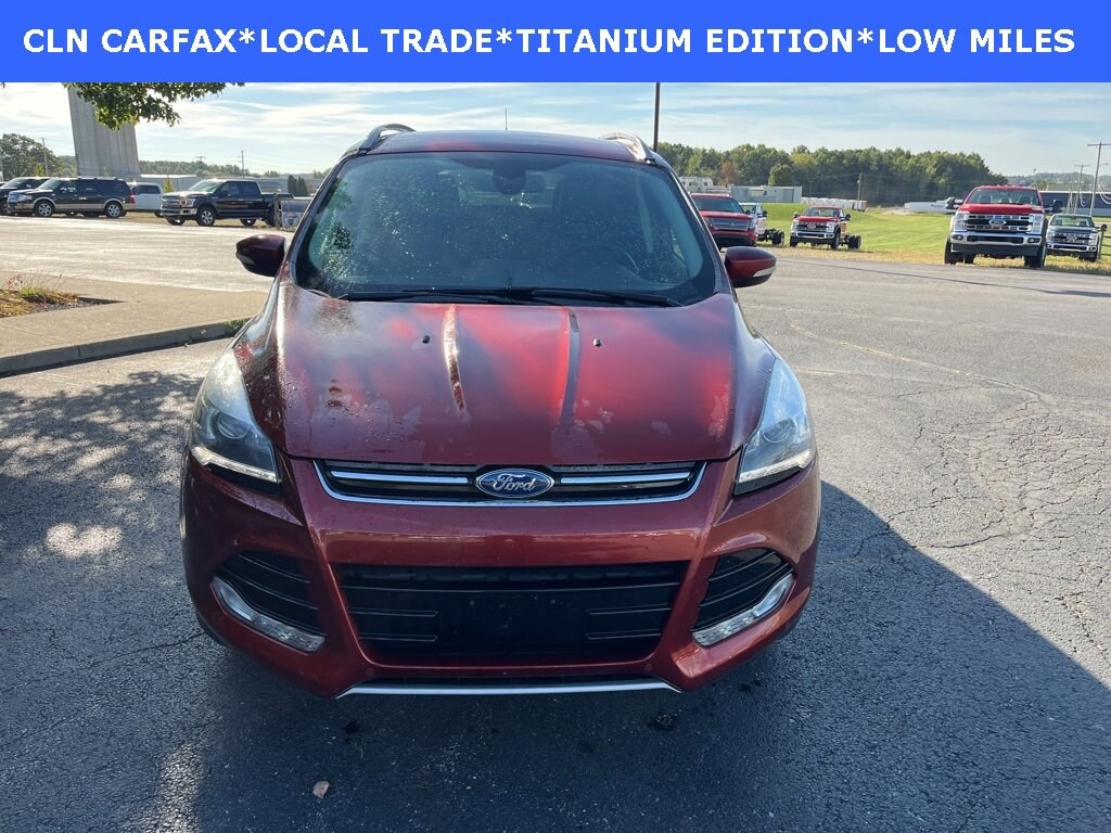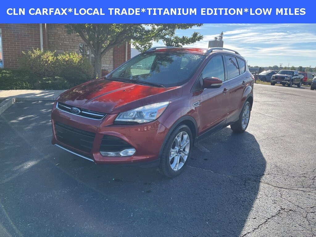 Recent Arrival! White's Ford of Orrville is proud to offer this 2014 Ford Escape Titanium in Sunset with Charcoal Black w/Heated Leather-Trimmed Buckets w/60/40 Rear Seat. This Escape is very well equipped with Equipment Group 401A, Titanium Technology Package (Active Park Assist, Bi-Xenon High-Intensity Discharge Headlamps, BLIS w/Cross Traffic Alert, and Rain-Sensing Wipers), Air Conditioning, Automatic temperature control, Front dual zone A/C, Power driver seat, Power steering, Power windows, Rear window defroster, Remote keyless entry, and Steering wheel mounted audio controls.
