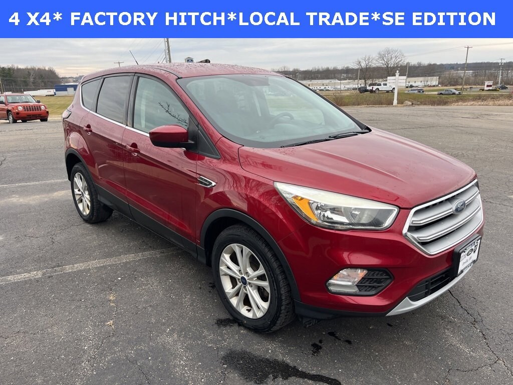 LOCAL TRADE*4 WHEEL DRIVE*FACTORY TOW HITCH*Recent Arrival! White's Ford of Orrville is pumped up to offer this 2017 Ford Escape SE in Ruby Red Metallic Tinted Clearcoat with Charcoal Black w/Cloth Buckets w/60/40 Split Rear Seat. This Escape is very well equipped with Backup Camera Class II Trailer Tow Prep Package, Equipment Group 200A, 6 Speakers, Air Conditioning, AM/FM radio: SiriusXM, Automatic temperature control, CD player, Power driver seat, Power windows, Rear window defroster, Remote keyless entry, and Steering wheel mounted audio controls.