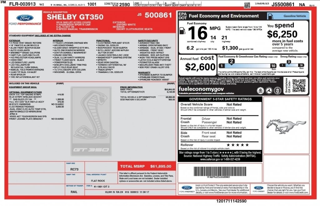 This and other GM finance offers leverage the benefits of GM Financial. Call or drive in for GM finance deals like this stunning 2018 Ford Shelby GT350 with finance options near Lancaster! This Shelby GT350 is also available for sale near Pickerington, Circleville, and Logan. These GM finance specials end 2/28/2026 Disclaimer: Finance this 2018 Ford Shelby GT350 (Model P8J, VIN 1FA6P8JZ3J5500861). Selling price $55,980.00, with $5,598.00 down at $868.19 for 72 months at 7.38% APR, on approved credit. Total payments: $62,509.68. Must finance through Ally Loan. $15.51 per $1,000 financed. Excludes tax, title, registration, license, and $250 dealer doc fee. Offer assumes these paid at time of sale. Offer cannot be combined with any other offers. Residential restrictions may apply. Available on in-stock units only. See dealer for complete details. Offer Expires: 02/28/2026.