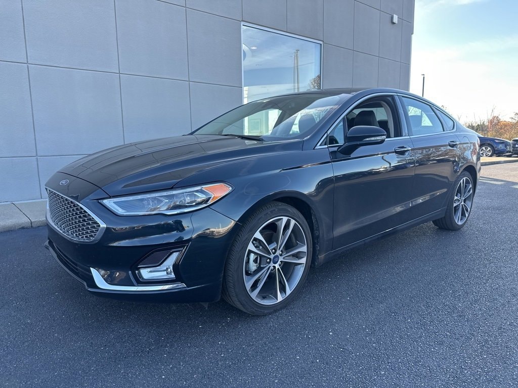 2020 Ford Fusion Titanium FWD! Alto Blue Metallic Tinted Clearcoat over Ebony Leather Heated/Cooled Seats, Backup Camera, Bluetooth, Navigation, Moonroof, Blind Spot Monitor, Push Button Start, Heated Steering Wheel, Ambient Lighting and More!
