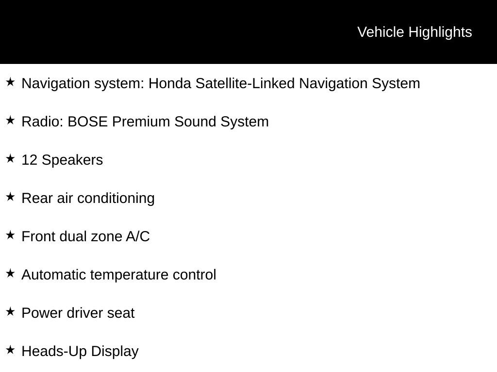 - Navigation system: Honda Satellite-Linked Navigation System