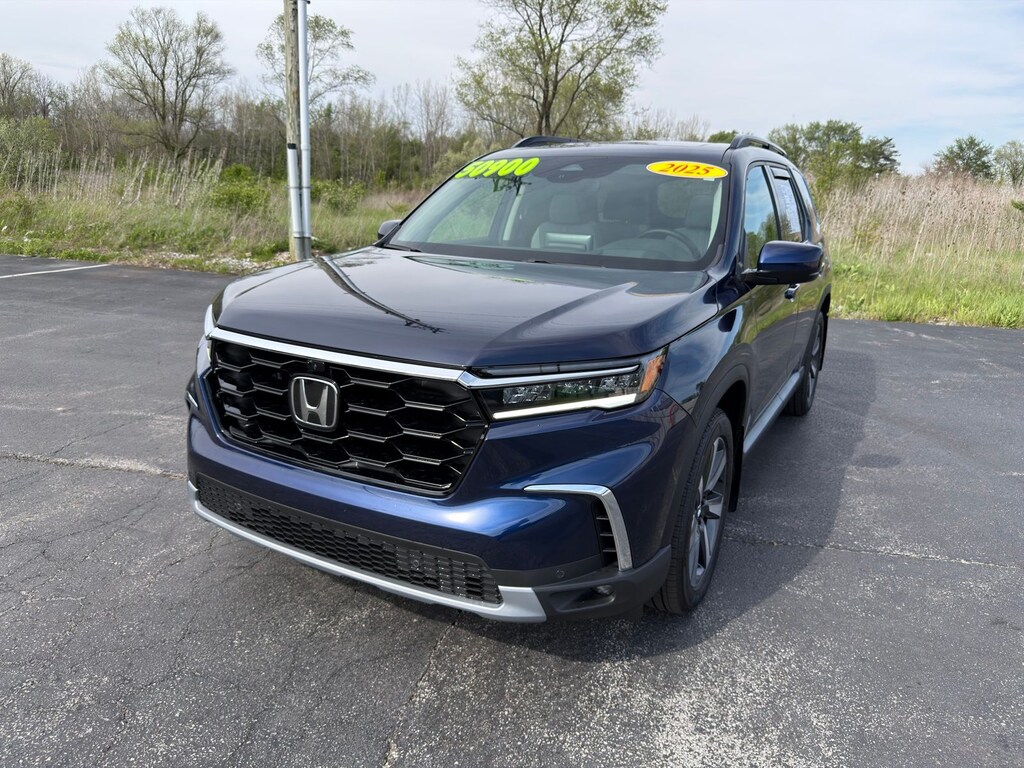 Recent Arrival! White's Honda/Toyota of Lima is pleased to offer this 2025 Honda Pilot in Blue with Leather. This Pilot is very well equipped with .