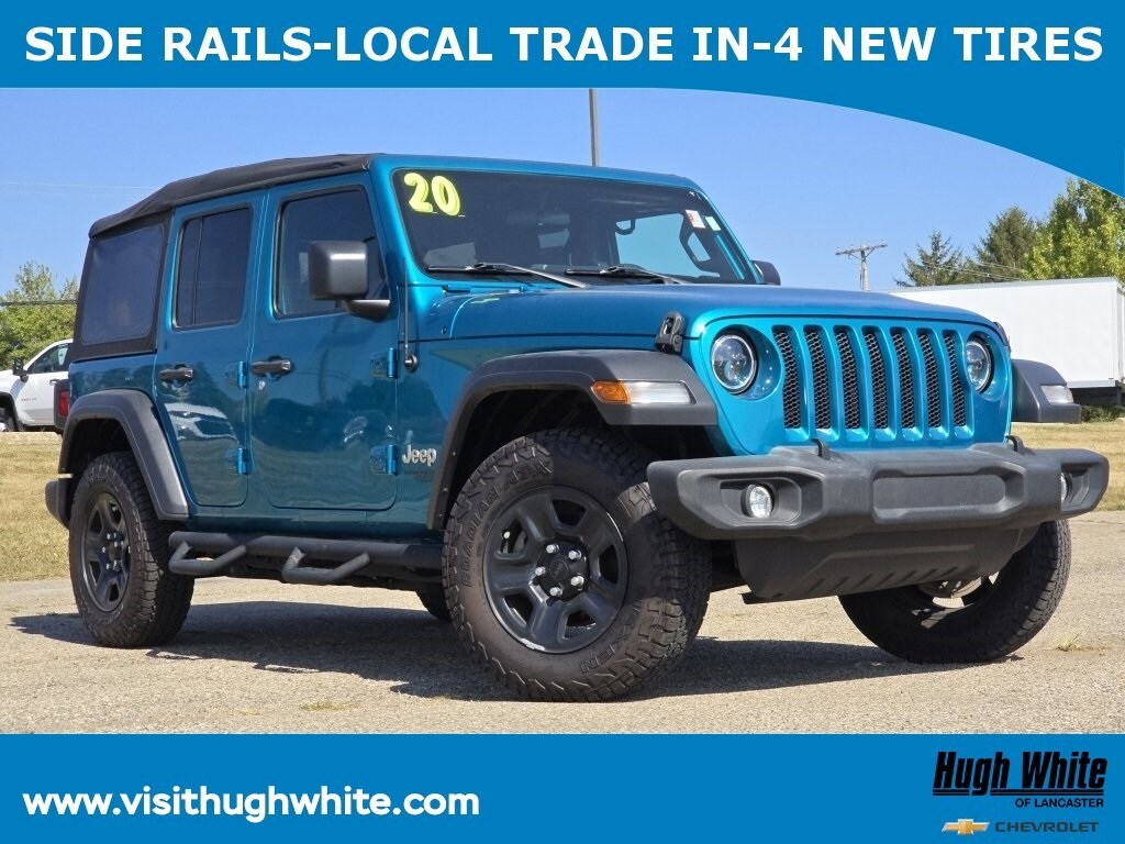 Free CARFAX report! DESIRABLE FEATURES: * LOCAL-TRADE-IN *, 4 NEW TIRES, VOICE CONTROLS, BLUETOOTH, BACKUP CAMERA, FOG LAMPS, SiriusXM. Your 2020 Jeep Wrangler Unlimited Sport 4X4 is perfect for daily work or weekend road trips to our neighboring communities of Lancaster, Columbus, Newark, Pickerington, and Logan.Hugh White Chevrolet of Lancaster also offers extended vehicle service contracts so our Lancaster, OH area drivers enjoy a worry-free used car, SUV or van ownership experience. We proudly serve the counties of Fairfield, Hocking, Perry, Licking, and Pickaway with quality pre-owned vehicles Ohio drivers can trust.