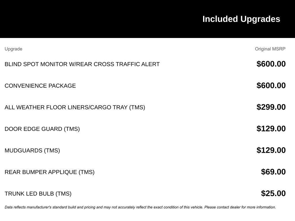- Forward collision: Toyota Safety Sense (TSS) 2.5 mitigation w/left turn assist